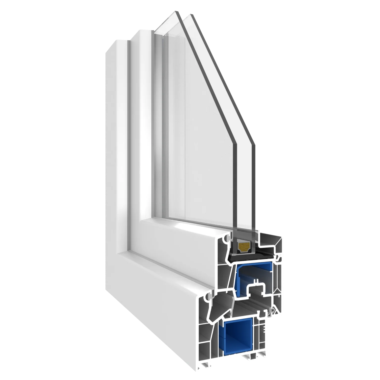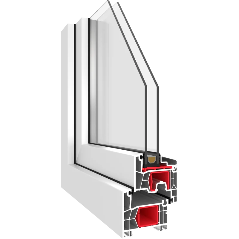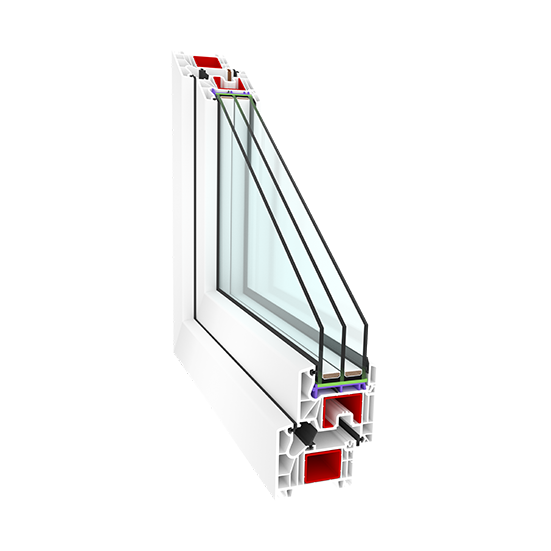 Kuuekambrilised profiilid 80 mm paigaldussügavusega ja 48 mm kolmekordse klaaspaketiga koos soojusisolatsiooniga klaasist vahedetailidega annavad U-väärtuse 0,78 W/m²K. Tihendid – 3; kambrid – 6